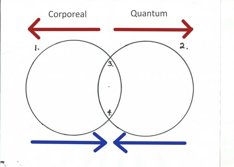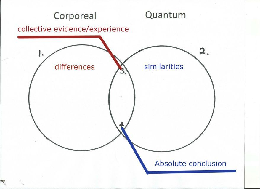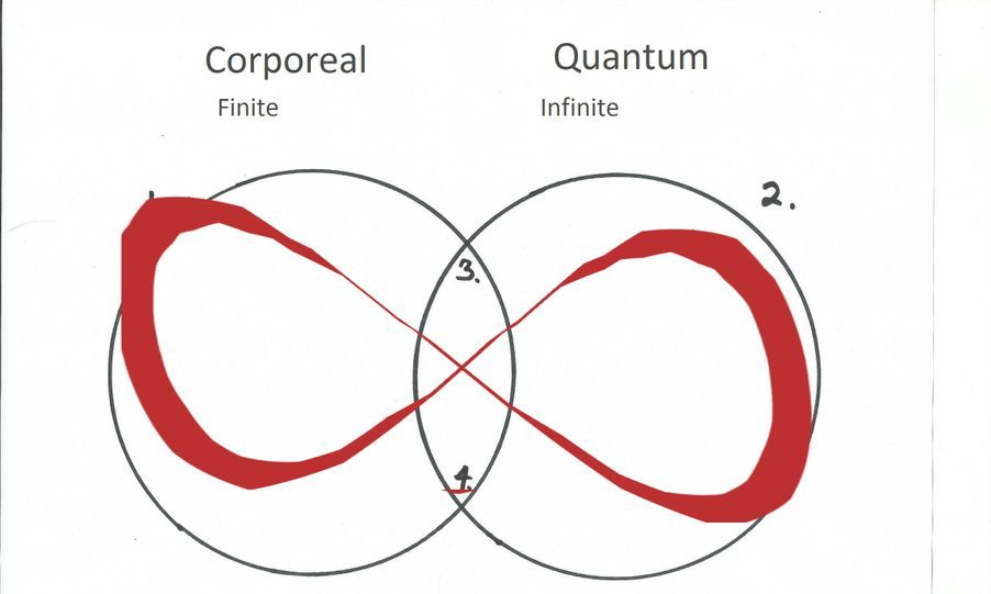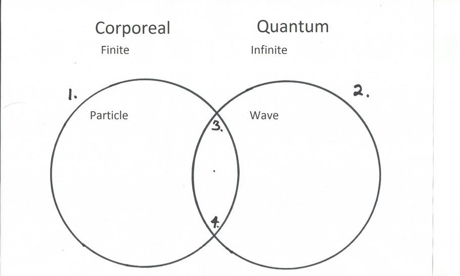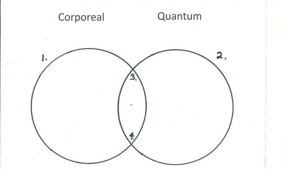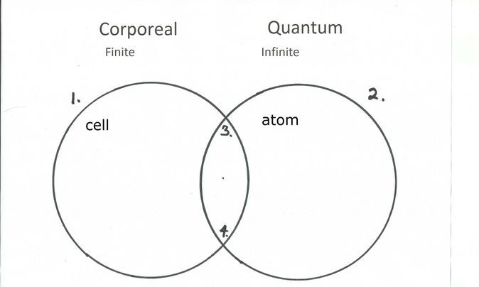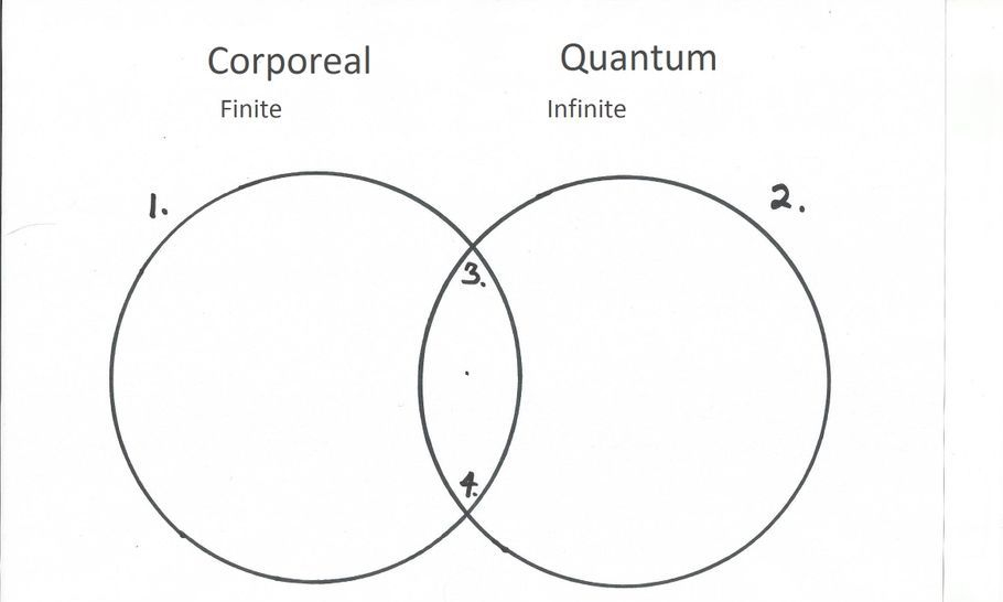 Using the Venn diagrams I will unite the temporal/corporeal world with the quantum world by showing how they are connected and how the mechanism connecting them operates. It may be easier to first discuss these worlds as the finite and the infinite, then work my way towards the concepts of the standard model (gravity) and relativity (the quantum world).