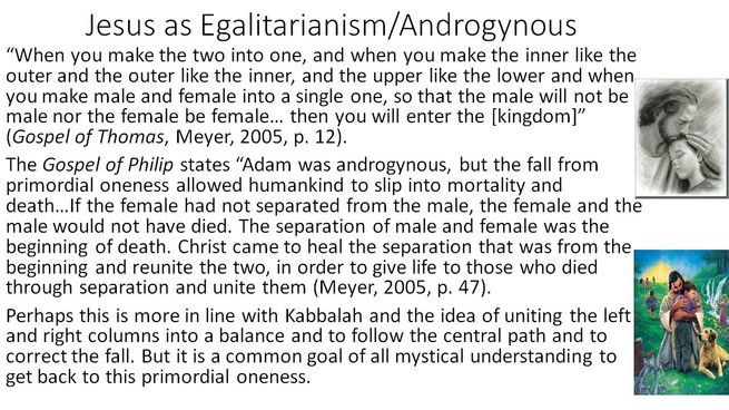 "and when you make male and female one, so that the male is no longer male and the female no longer female, then you shall reach the kingdom of heaven."