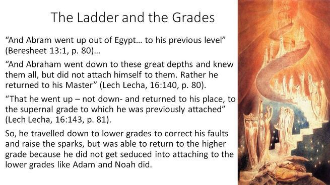 To correct his personal tikkun, Abraham “descended into negative regions to retrieve and elevate the sparks trapped in the dark recesses of our being” (p/62). Here we can see a clear similarity between Catholic and Jewish Mysticism. First, we must divest ourselves from the external focus of our senses, then after a certain point travelling upward on the ladder, one goes through a period of darkness to correct our faults in order to elevate the soul to God. This is an introspective journey that requires expulsion of negative, hardhearted and selfish qualities from our character. To provide a bit more detail regarding his personal journey, here are some quotes from the Zohar.
