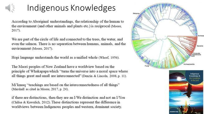 According to Indigenous understandings, the relationship of the human to the environment (other animals and plants etc.) is reciprocal. Sylvia Moore (2017) discusses how we are part of the circle of life and connected to the trees, the water, and even the salmon. What was important about the salmon project in her book was the process of teaching and bringing back the salmon to the stream. So, the process is important in Indigenous contexts as well, much like the many worlds interpretation of quantum physics. There is no separation between the human and other humans or animals or the environment but if there are distinctions, then they are an I/We distinction and not an I/You (Chilisa & Kawulich, 2012). These distinctions represent the difference in worldviews between Indigenous peoples and western, dominant society. This brings us to the difference between organismic and mechanistic worldviews.