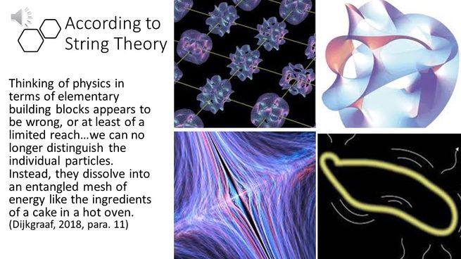 Thinking of physics in terms of elementary building blocks appears to be wrong, or at least of a limited reach…we can no longer distinguish the individual particles. Instead they dissolve into an entangled mesh of energy like the ingredients of a cake in a hot oven. (Dijkgraaf, 2018, para. 11)