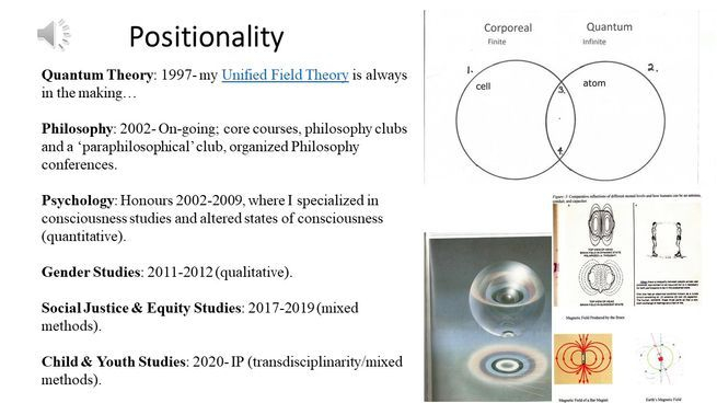 This is the major veiwpoint taken on this site in regard to these topics, but since the completion of my Masters degree in Gender Studies, I've been trying to go back and make it more inclusive. This link includes a proposed field theory for Psychology because the two major branches of Psychology (quantitative and qualitative) find it hard to see eye to eye. This (and the next) section is for members only.