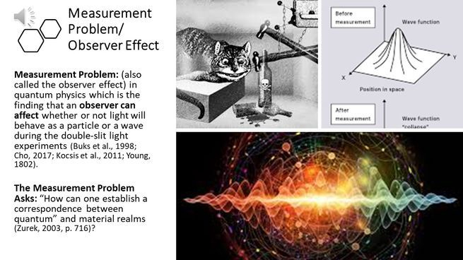 It was found that a pan-experientialist and panpsychist approach can be used to resolve the measurement problem in quantum physics (also called the observer effect), which is essentially the finding that an observer can affect whether or not light will manifest as a wave or a particle during the double-slit light experiments (Buks et al., Cho, 2017; Young, 1802). The measurement problem asks the question, “[h]ow can one establish a correspondence between quantum” and material realms (Zurek, 2003, p. 716)? Or how can these realms interact or communicate.