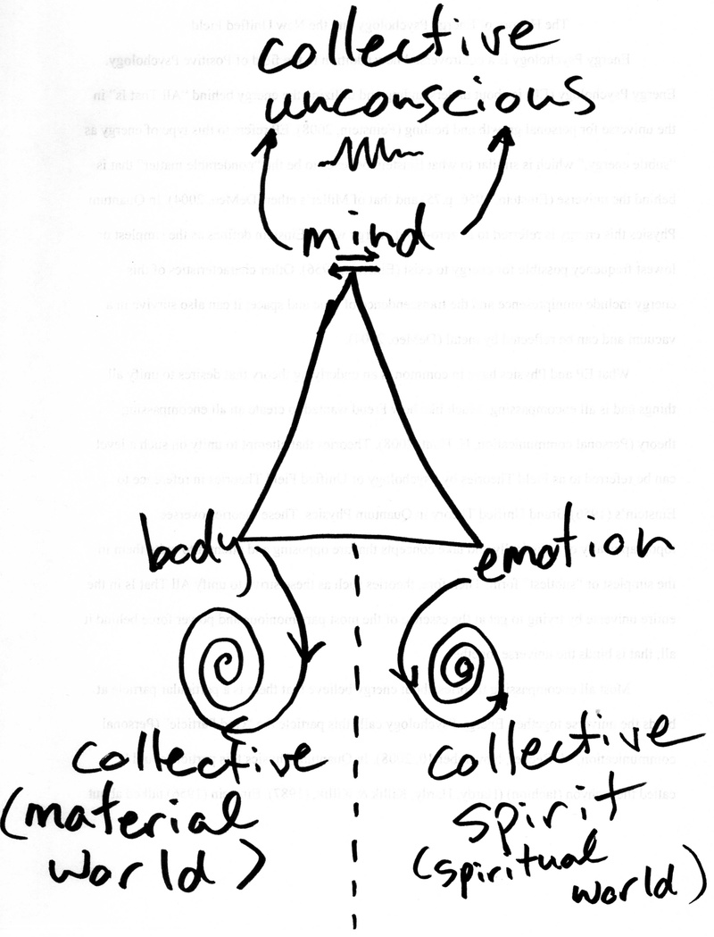 Going back to Energy Psychology’s idea of the auric field, it was also mentioned that we are like antennas and can pick up on other people’s energy. For example, you walk to into a room and meet someone for the first time and for some reason you are put off by them, or perhaps drawn toward them instead. This is your energy field feeling out and communicating with the energy field of the other person (P.C. M. Becker, 2008). Fechner believed that all forces in the universe could be narrowed down to repulsion and attraction (Heidelberger, 2004). If this is true, and we add Pythagoras’ knowledge to the theory, then perhaps we can use this antenna to tap into the frequency of the music of the spheres. This antenna could be the mechanism that that mediates between the self and the universe. One can tap into the energy of the universe through meditation or creativity or any act that produces a balance between body mind and emotion such as flow described by (Csikszentmihalyi, 1999). The combined energy or union of the opposites of the body mind and emotion levels could create the catalyst necessary to transcend.
