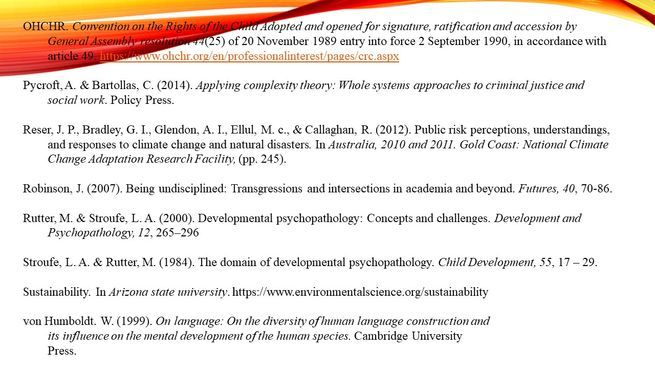 In contrast, Western thinking tends to produce a linear, fragmented, and compartmentalized world where the sum of the parts equals the whole. This produces a mechanistic world view, as opposed to indigenous thinking that produces an organistic world view (Coole & Frost, 2010; Harris et al., 1977). Organistic thinking, also called ‘system thinking’ (Angyal, 1965), sees the world in terms of complex patterns with an implicit order of unification. This is somewhat in line with Developmental Psychopathology because it stresses the importance of dynamism and reciprocity and uses complex models (Cicchetti & Rogosch, 1996; Rutter & Stroufe, 2000; Stroufe & Rutter, 1984). But goes against traditional positivist understandings of reductionism and simple causation and against a mechanistic worldview that focuses on linear relationships and individual elements or parts (Harris et al., 1977). According to Coole and Frost (2010), “[h]ostilities between [mechanistic and organistic] approaches have traditionally been staged as an opposition between mechanistic and vitalist understandings of (dead versus lively) matter” (p. 9). As well as producing a short-sighted understanding of complex systems, mechanistic thinking objectifies the Earth. This objectification subsequently justifies the exploitation of the Earth and the unrestrained extraction of its resources for personal gain. Mechanistic thinking, therefore, is a slippery slope towards aggressive neoliberal exploitation of peoples and the Earth in the pursuit of profit.