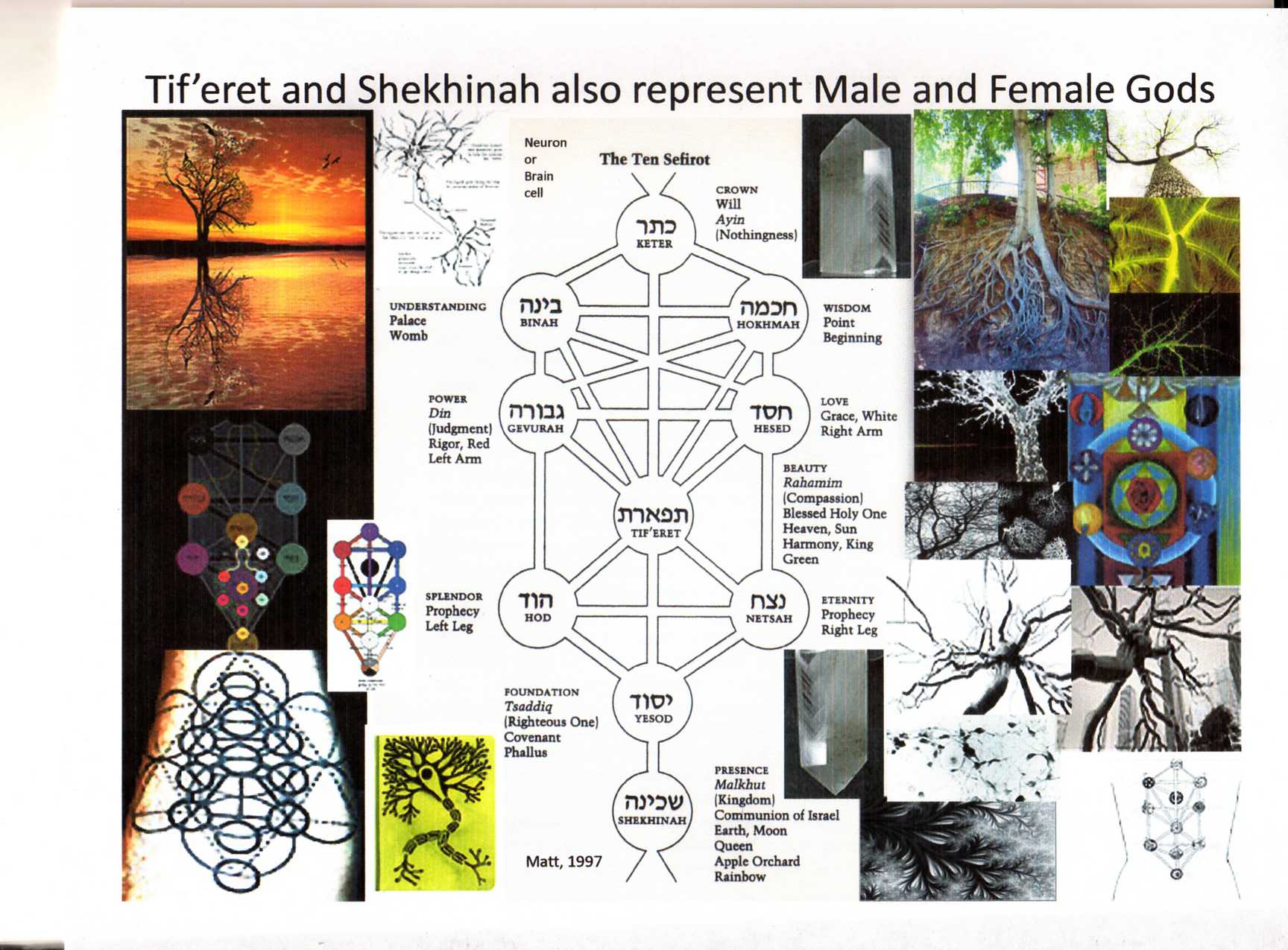 This section begins with a confusing paper about taking back the spirit. If the point can be penetrated, it tells an interesting story about Modernity and the Age of Reason, with a twist by providing evidence that emotion could be considered superior to reason. It also complicates Carteasian mind/body distinctions by adding spirit back into the equation. Have fun following that one lol. I can't even follow it ;) There are other papers about explaining Mystical experiences and others comparing Western and Eastern styles of consciousness. My favourite is the book review of Kabbalah. I like how this site allows me to go back and fix/reword old papers/ideas. This section really details what it is like to have a theory in the making and shows how ideas develop over time. One day my ideas/theory will be comprehensive to others outside my wacky brain :)