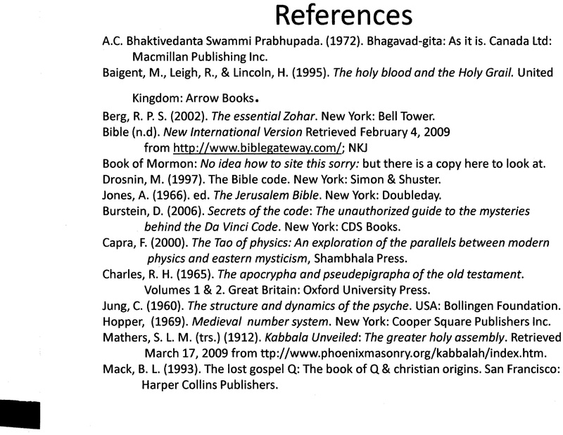 This section begins with a work that is a detailed analysis of the screenplay/poem found in the Art section of this site. This paper looks at the research behind the play that inspired its manifestation (or why I wrote the play). It is hard to avoid the Book of Revelations when the topic of the Apocalypse comes up, so the next paper in this section is a comparison of the similarities and differences of the Book of Daniel and the Book of Revelations. Many similarities were found and the research leads one to beleive that we are in the dawning of the Age when we will see great changes in the world as we know it today.